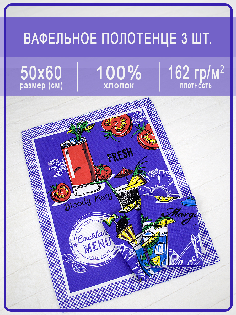 Набор вафельных полотенец купон Коктель фиолетовый