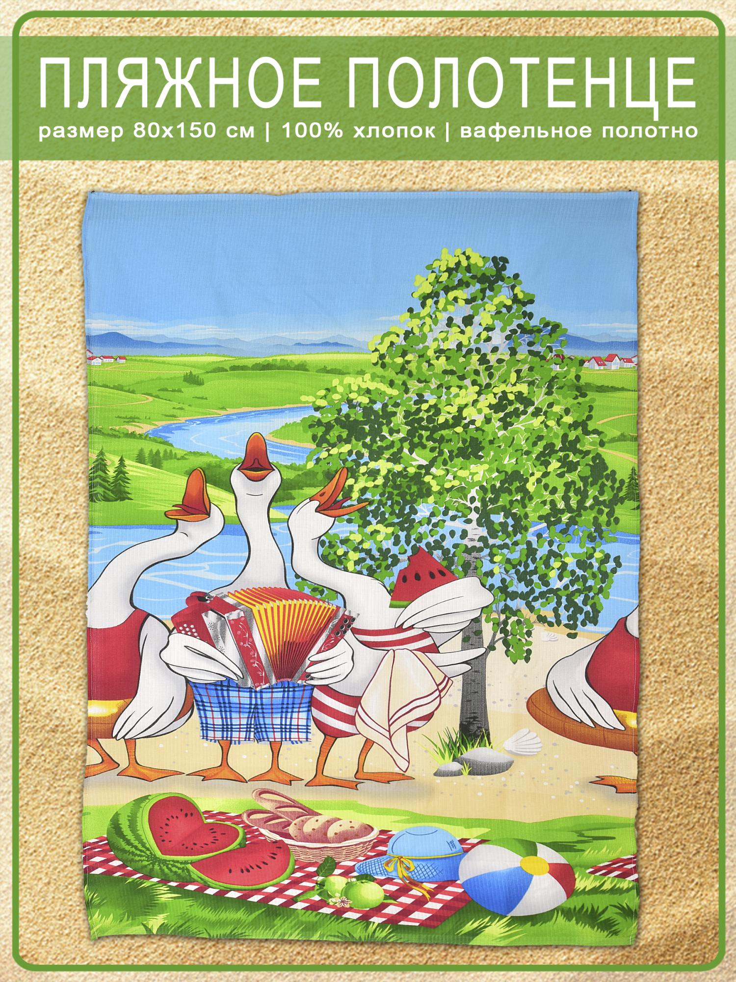 —Вафельное пляжное полотенце Веселые гуси